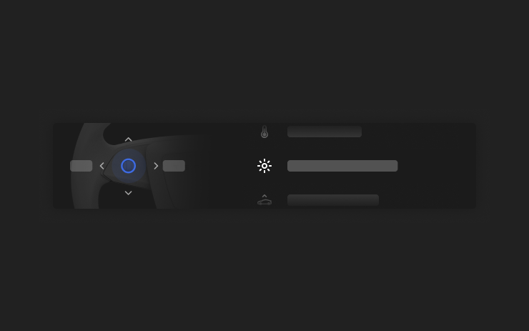 Ta molette de gauche comprend de nouvelles options pour accéder rapidement à diverses commandes du véhicule, telles que le mode de défense contre les armes biologiques, la navigation en sourdine et la synchronisation musique-lumière - si elle est disponible dans ton véhicule.